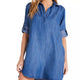 Meet our Fashion Denim V-Neck Long sleeves Shirt—a stylish and versatile piece for your wardrobe this season. With its V-neck design and soft blue washed denim, this dress combines casual elegance.