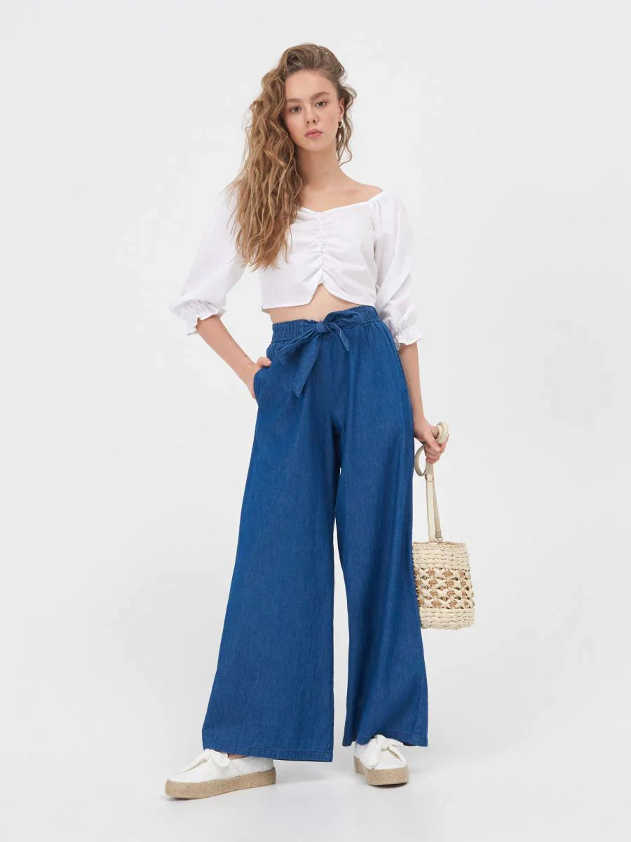 Upgrade your wardrobe with our beautiful Wide Leg Palazzo Trousers with Tie Waist. Made from soft, high-quality fabric, they feel luxurious and look stylish.